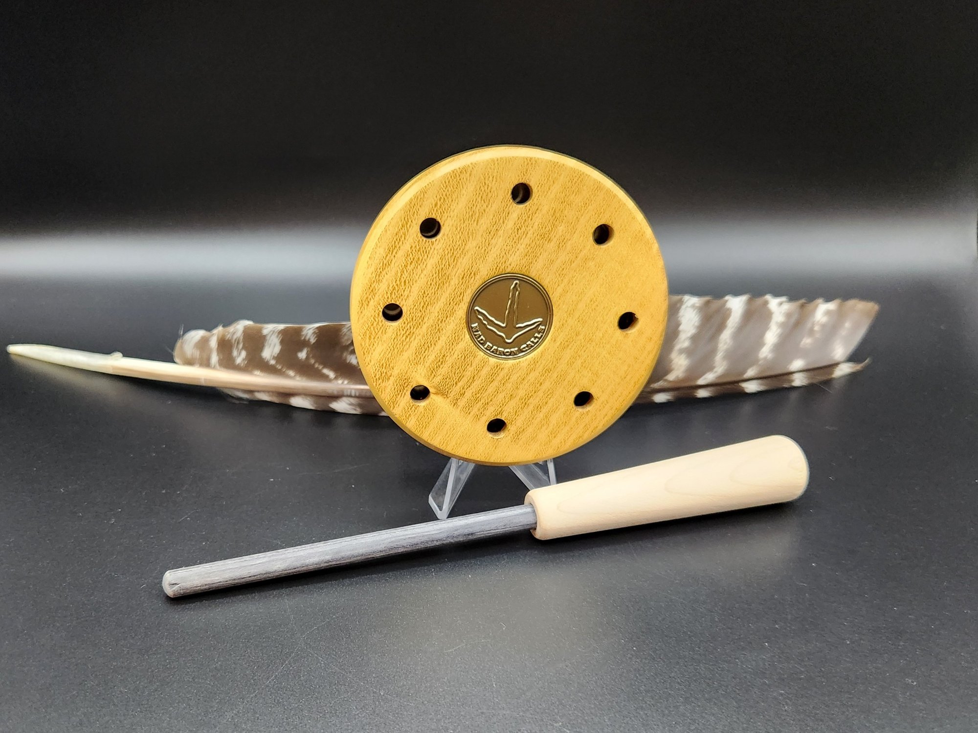 Each call is made on a lathe, by hand, one at a time. A lot of time is spent on the sound quality, fit and finish of each call. My strikers are made to a specific weight and matched up with a specific call to achieve the turkey sounds I prefer. The striker tops are finished for protection. Every call is fully guaranteed for craftsmanship.