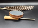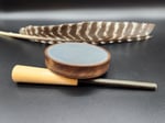 Nice rift sawn, curly, Walnut, pot call with grey slate over a glass soundboard. Matched with a Dymondwood and Maple striker. A great realistic sounding and versatile pot call!